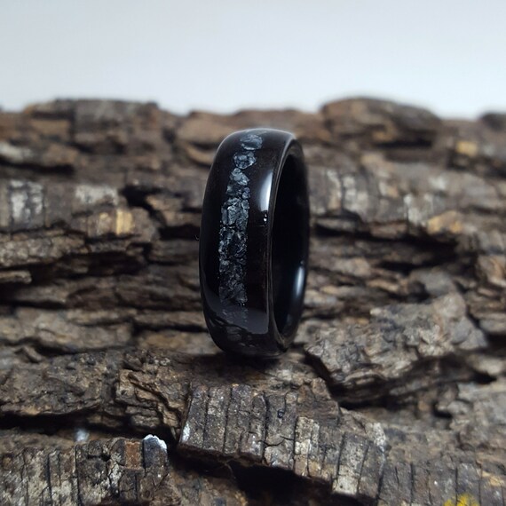 Obsidian Meteorite Ring Mens Wedding Band Carbon Fiber Ring Etsy